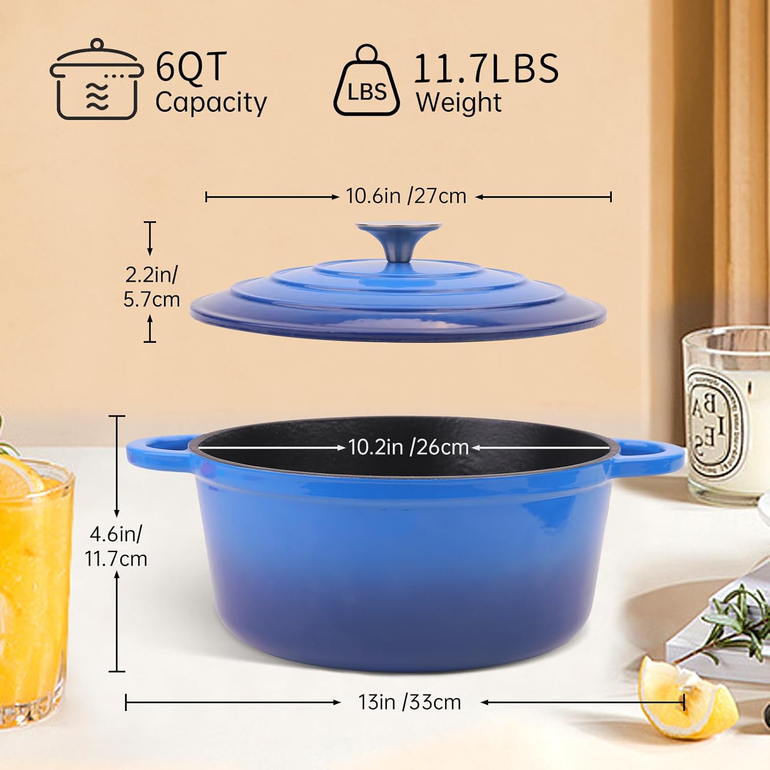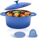 - LARGE CAPACITY & INSULATION ACCESSORIES: The enameled cast iron dutch oven pot is made with precise and meticulous craftsmanship, blending durability with aesthetics for your cooking pleasure. We provide you with insulated silicone pot mats and silicone gloves to save you from the risk of burns.
